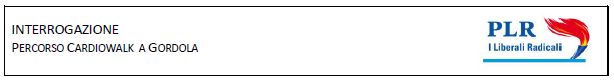 Durante la seduta di Consiglio Comunale dell'11 giugno 2018 veniva approvata dallo stesso gremio la mozione risalente ad ottobre 2016 che chiedeva la realizzazione di un percorso Cardiowalk a Gordola, presentata dal sottoscritto Consigliere comunale Cosimo Lupi, dopo che una prima interpellanza era stata già presentata ad ottobre 2014 (!).